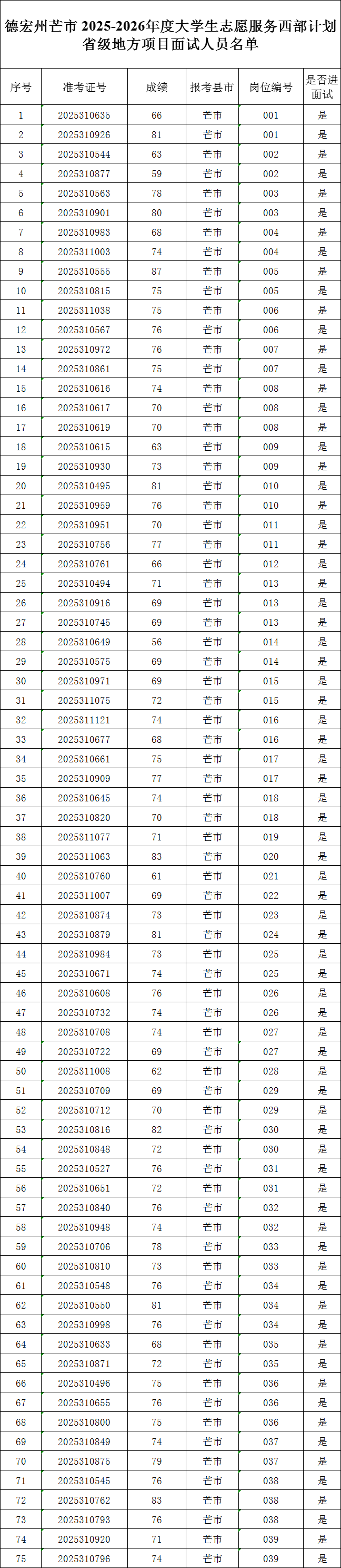 按照《德宏州2025-2026年度大学生志愿服务西部计划省级地方项目志愿者招募公告》要求,现将芒市2025—2026年度大学生志愿服务西部计划省级地方项目招募资格复审及面试有关事项公告如下: