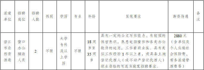 澄江市自然资源局因工作需要,委托澄江市启澄人力资源有限责任公司,面向社会公开招聘派遣辅助工作人员2名,现将有关事项公告如下: