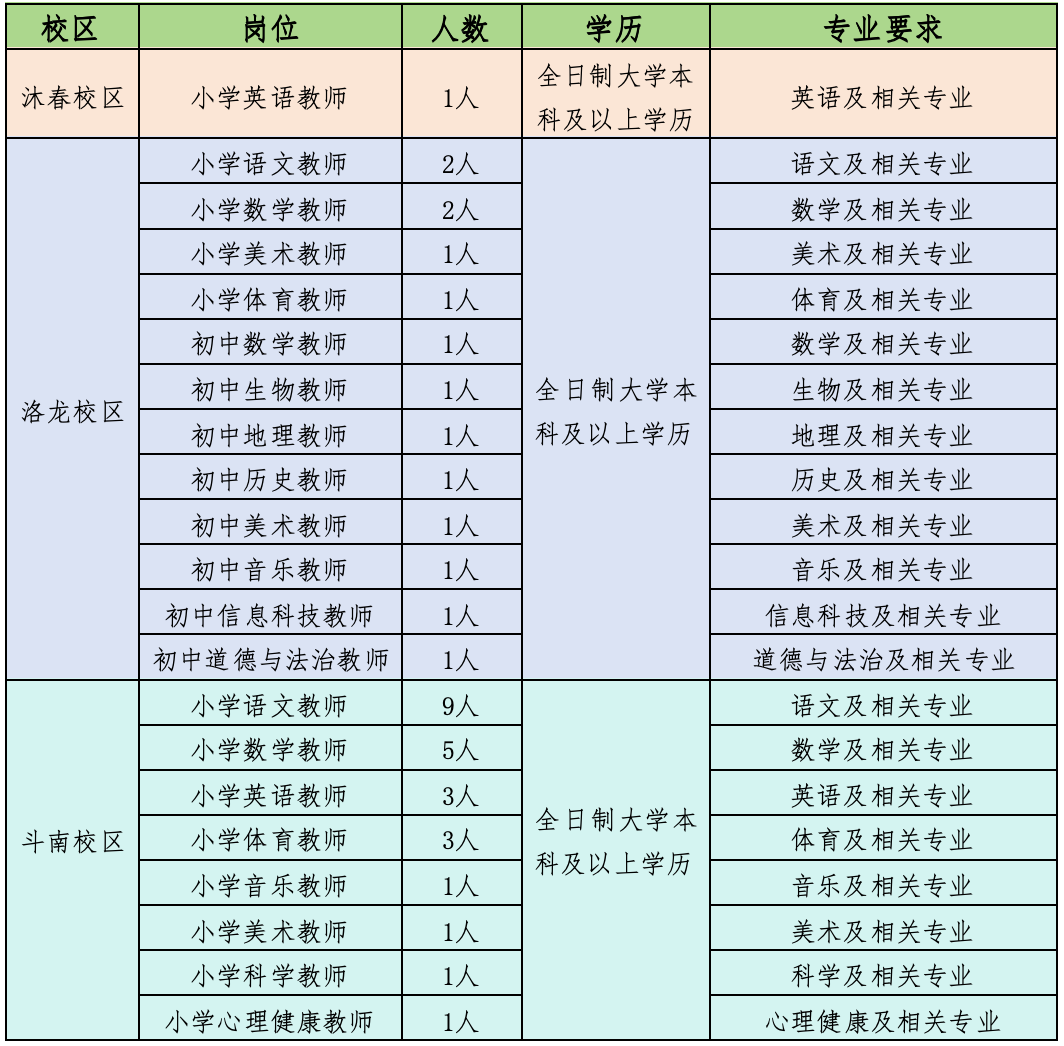 经教育主管部门同意,根据学校2025年建设发展需要,现面向社会公开招聘聘用制教师39人,其中沐春校区1人,洛龙校区14人,斗南校区24人。