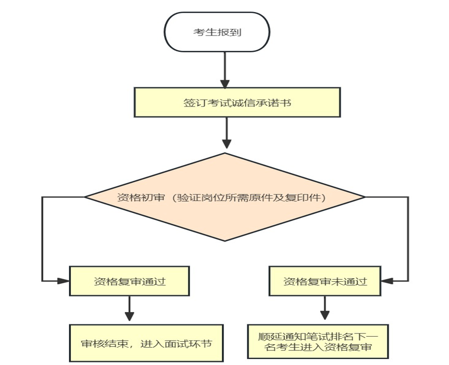 1.招聘岗位按招聘人数与现场资格复审人数1:2比例以从高分到低分排序进入现场资格审核。若出现资格复审不合格或放弃资格复审的情况,按照笔试分数从高到低的顺序依次递补后仍未达到比例的岗位,降低比例或等额进行资格复审。