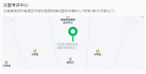 昆明市官渡区环湖东路滇池国际会展中心7号馆北门外环路1楼(云南众智考评中心)