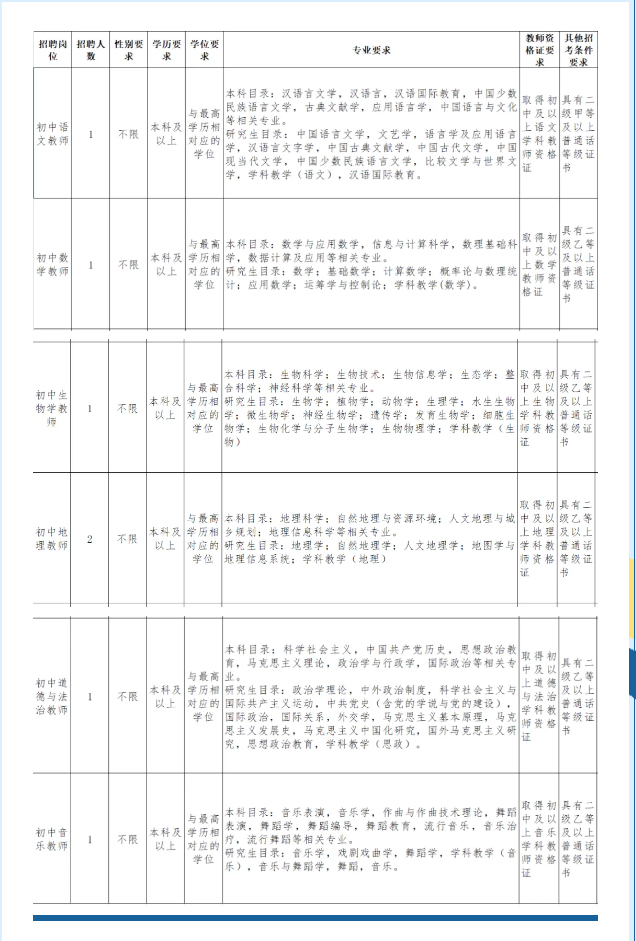 4.有初中教育教学工作经历者,担任过班主任、年级组长的教师优先。