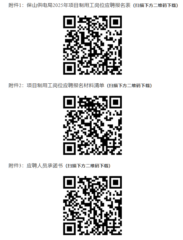 应聘人员按照《附件1:保山供电局2025年项目制用工岗位应聘报名表》填写个人报名信息,并根据《附件2:项目制用工岗位应聘报名材料清单》提供项目报名材料,签订《附件3:应聘人员承诺书》。