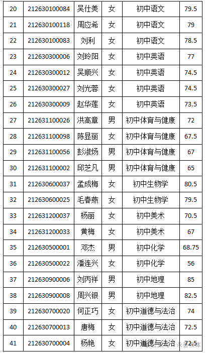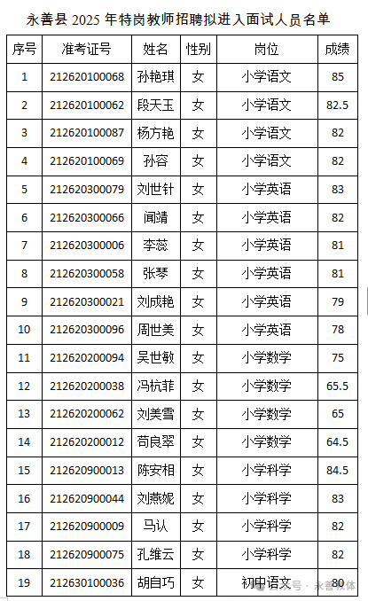 附件:永善县2025年特岗教师招聘拟进入面试人员名单