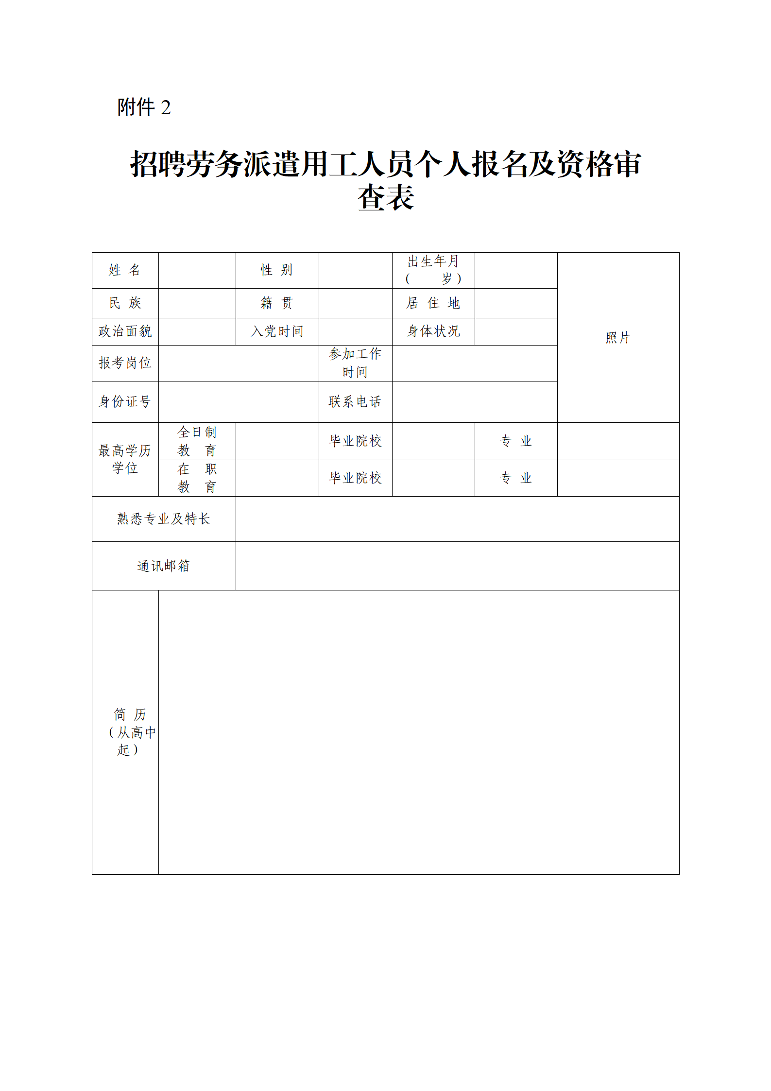 2.招聘劳务派遣用工人员个人报名及资格审查表