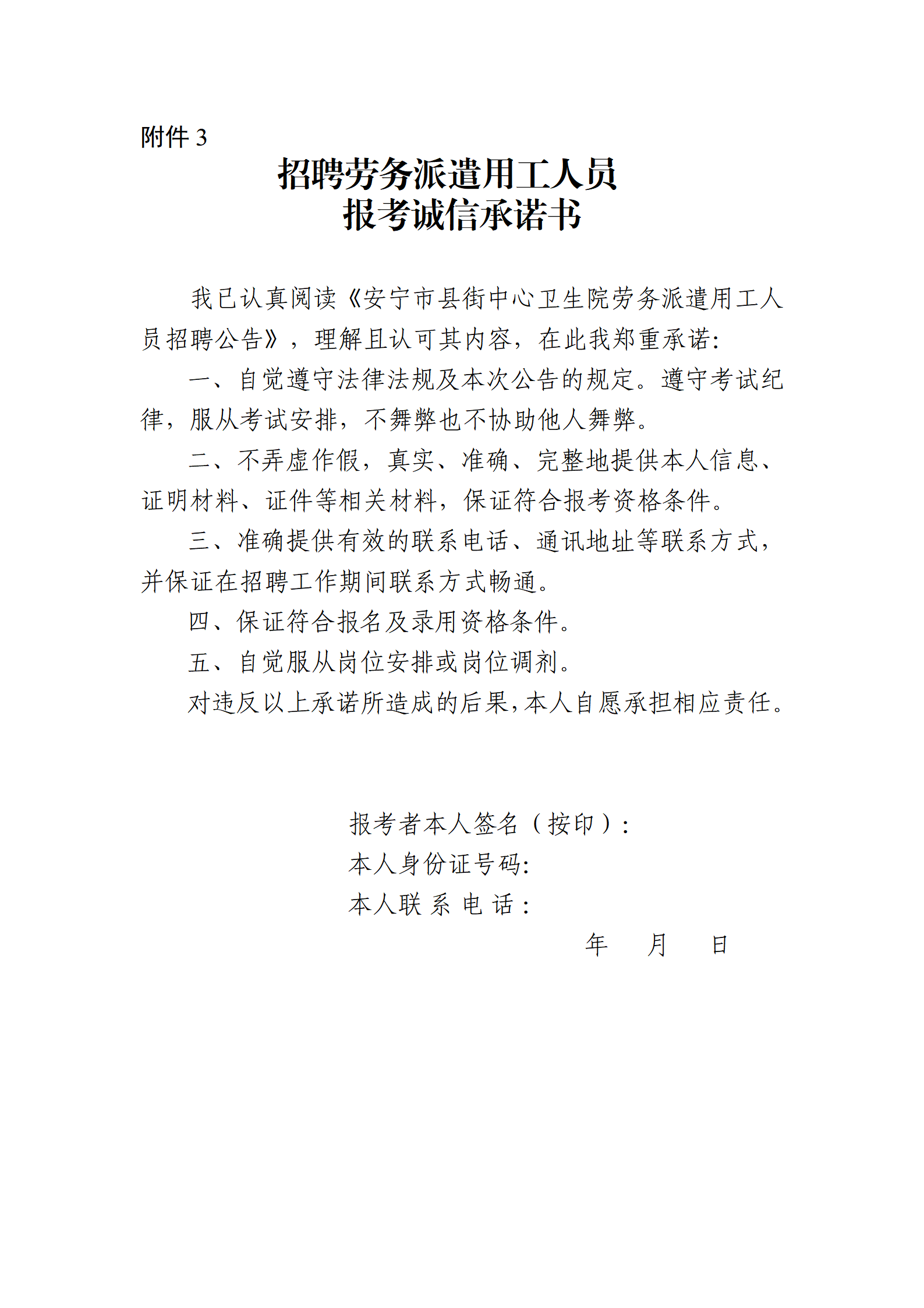 3.招聘劳务派遣用工人员报考诚信承诺书
