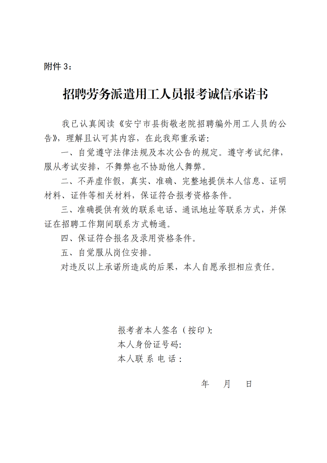 3.招聘劳务派遣用工人员报考诚信承诺书