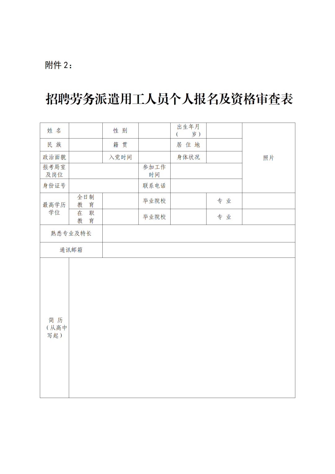 2.招聘劳务派遣用工人员个人报名及资格审查表
