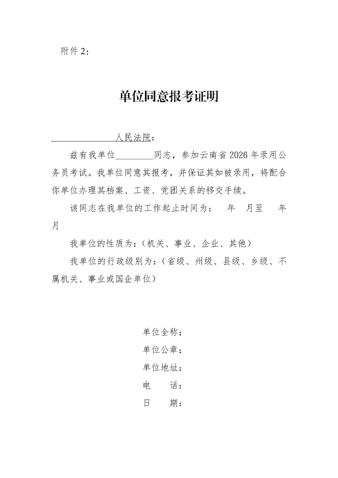 附件2:单位同意报考证明.doc